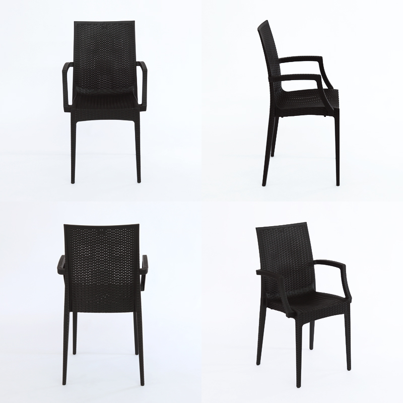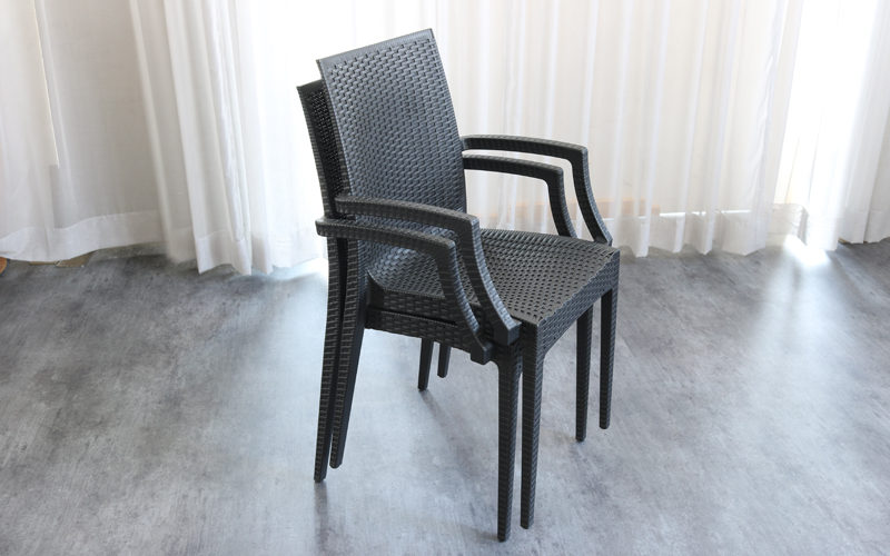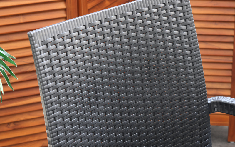 ラタン調1人掛けガーデンチェア。 室内はもちろんガーデンやベランダ、テラスでの使用に最適です。 まるでラタンで編みこまれたような手の込んだリアルなデザイン。 使わないときはスタッキングできて収納場所を取りません。 足裏にはすべり止めの固いゴムが付いているので、安心してお使いいただけます。 |
