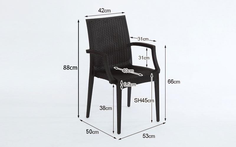 外寸:(幅)53×(奥行)50×(高)88 (座面高さ)45 cm |