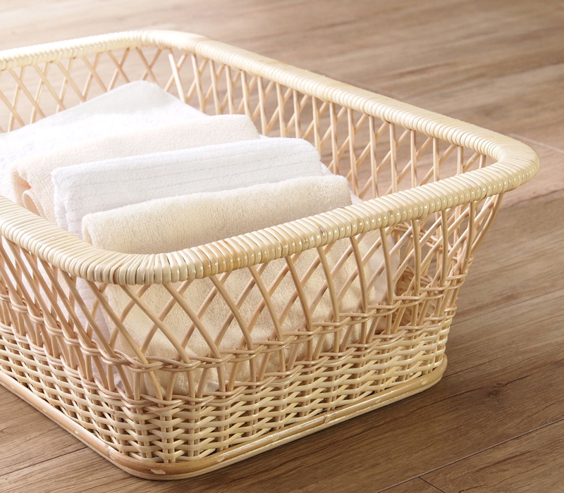 ポイント | 温泉旅館やホテル・岩盤浴などでも使われている業務用品質の脱衣カゴ。 熟練職人が手間隙をかけてひとつひとつ丁寧に手編みによってつくられています。 ラタン製なので通気性が良く、しなやかで安定感のある丈夫なつくり。 |